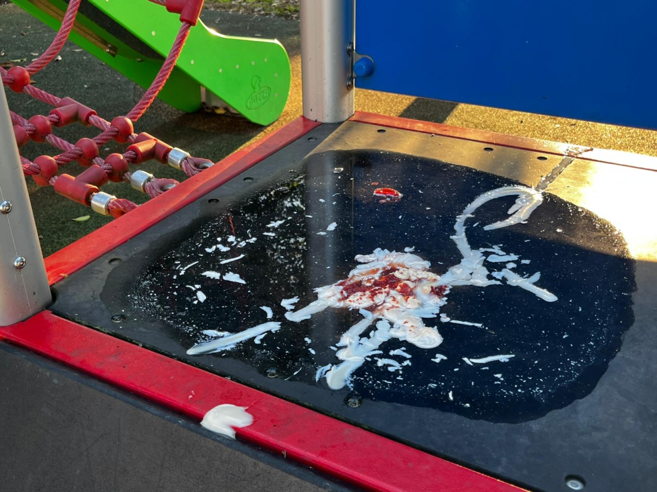 Scivoli, altalene e pavimentazione gommata sono stati cosparsi di ketchup e maionese, lasciando l’area in condizioni igieniche precarie e rendendo le strutture inutilizzabili.