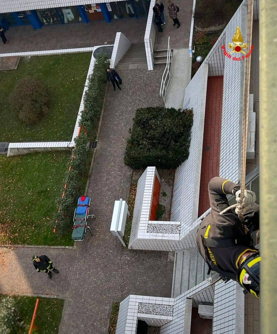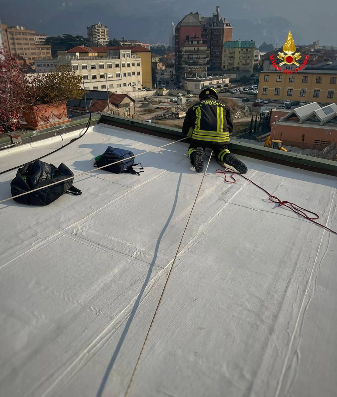 Lecco: Vigili del Fuoco si calano dall’alto per salvare una persona bloccata in casa