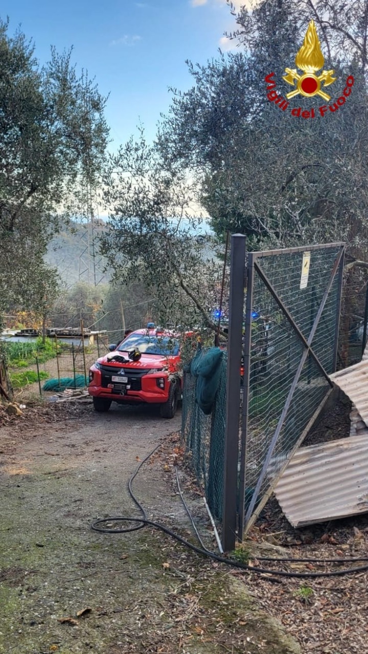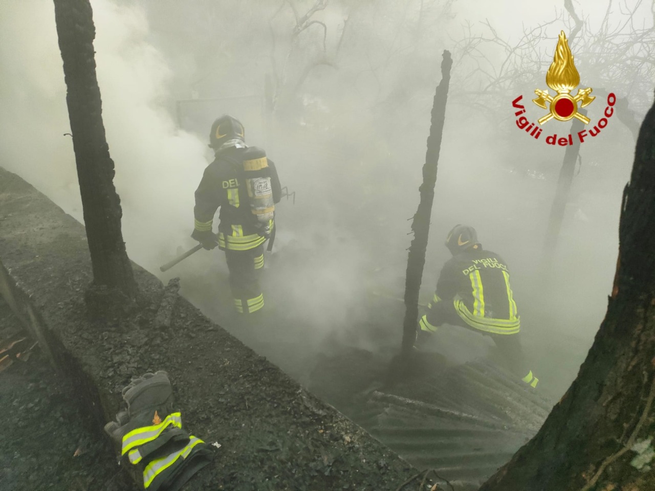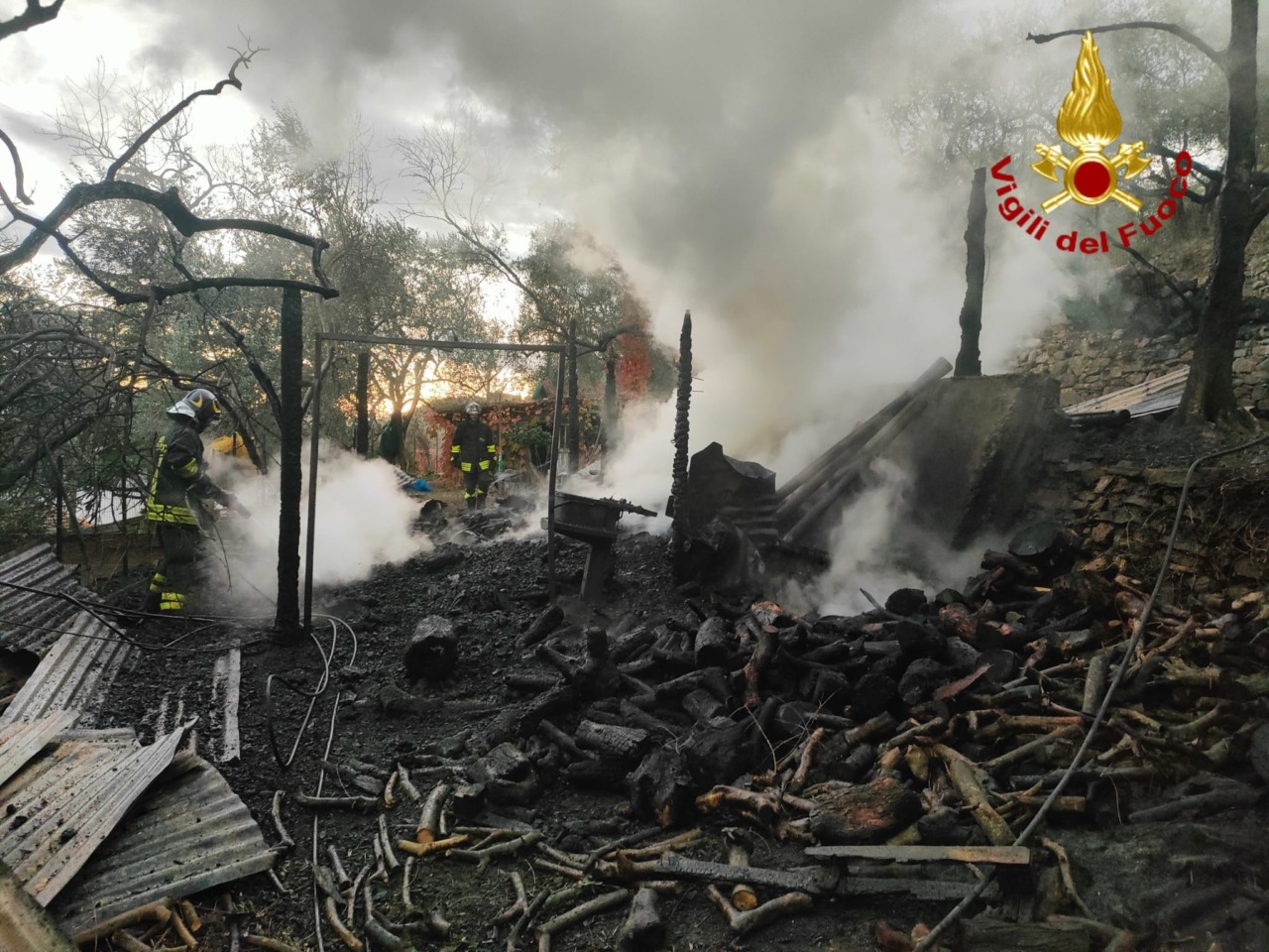 Un incendio nel pomeriggio, in via Poggiolo, di frazione Montegrazie, a Imperia, dove una legnaia ha preso fuoco per motivi in fase di accertamento.