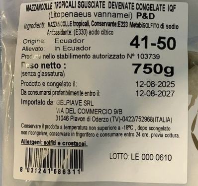 Nella giornata di martedì 10 febbraio 2026, il Ministero della Salute ha emesso un richiamo alimentare per una tipologia di mazzancolle commercializzate a Oderzo.