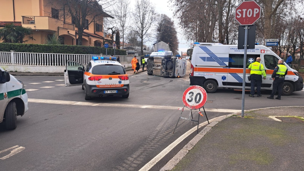 Incidente all’incrocio, un mezzo si ribalta