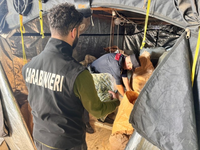 Nel corso di un servizio finalizzato al contrasto del traffico di sostanze stupefacenti nell’area dei Castelli Romani, hanno effettuato un controllo presso un campo agricolo nell’area rurale del comune di Marino, ove opera una azienda per la coltivazione e la trasformazione di canapa, finalizzata alla produzione di alimenti, cosmetici e materie prime biodegradabili. Nel corso dell’attività, i militari hanno accertato che i due titolari e gestori della compagine detenevano illecitamente, poiché destinato e utilizzato per finalità diverse da quelle consentite dalla normativa di settore, 44 kg di resina di canapa, 424 kg di infiorescenze di canapa, materiale per la lavorazione e lo stoccaggio di stupefacente ( tra cui 6 serre per attività di maturazione ed essiccazione dello stupefacente, 1 cella frigorifero e 2 laboratori grow box), nonché denaro ritenuto provento dell’attività illecita.