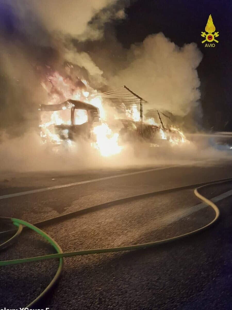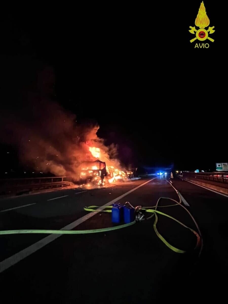 Il camion era carico di carta ed è stato facile esca per il rapido propagarsi delle fiamme.