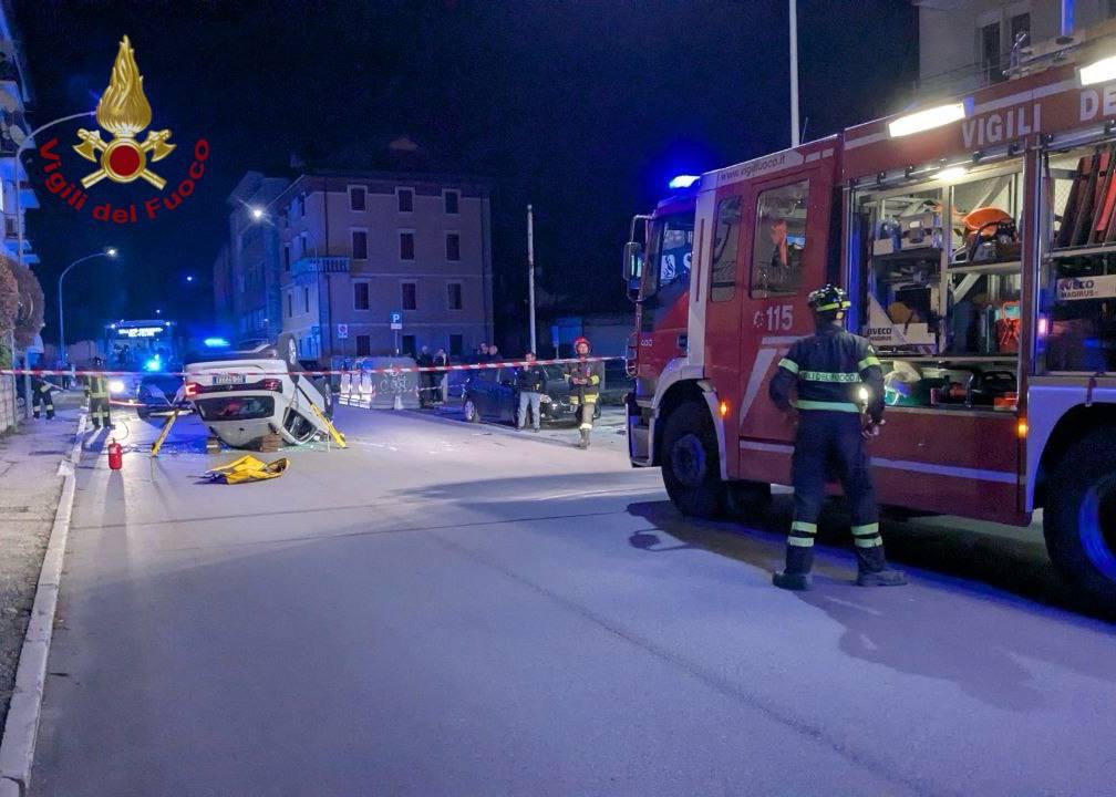 Paura nel tardo pomeriggio di martedì 11 novembre 2025 in via Feltre a Belluno, dove un’auto si è ribaltata dopo aver urtato un veicolo parcheggiato lungo la strada.