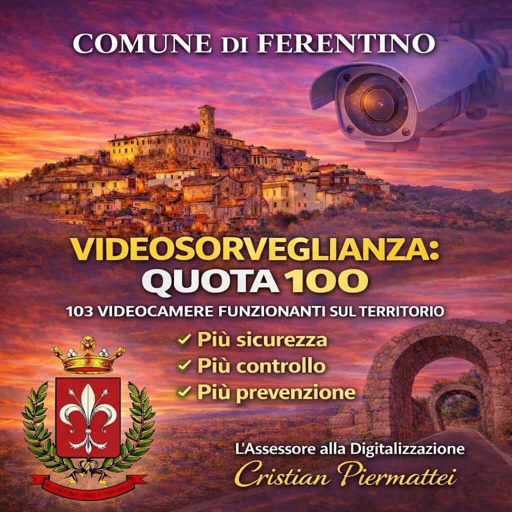 Il Comune di Ferentino supera quota 100 telecamere di videosorveglianza attive sul territorio comunale. Un traguardo importante, frutto di un lavoro costante e programmato dall’Amministrazione comunale e in particolare dall’Assessore alla Digitalizzazione Cristian Piermattei.