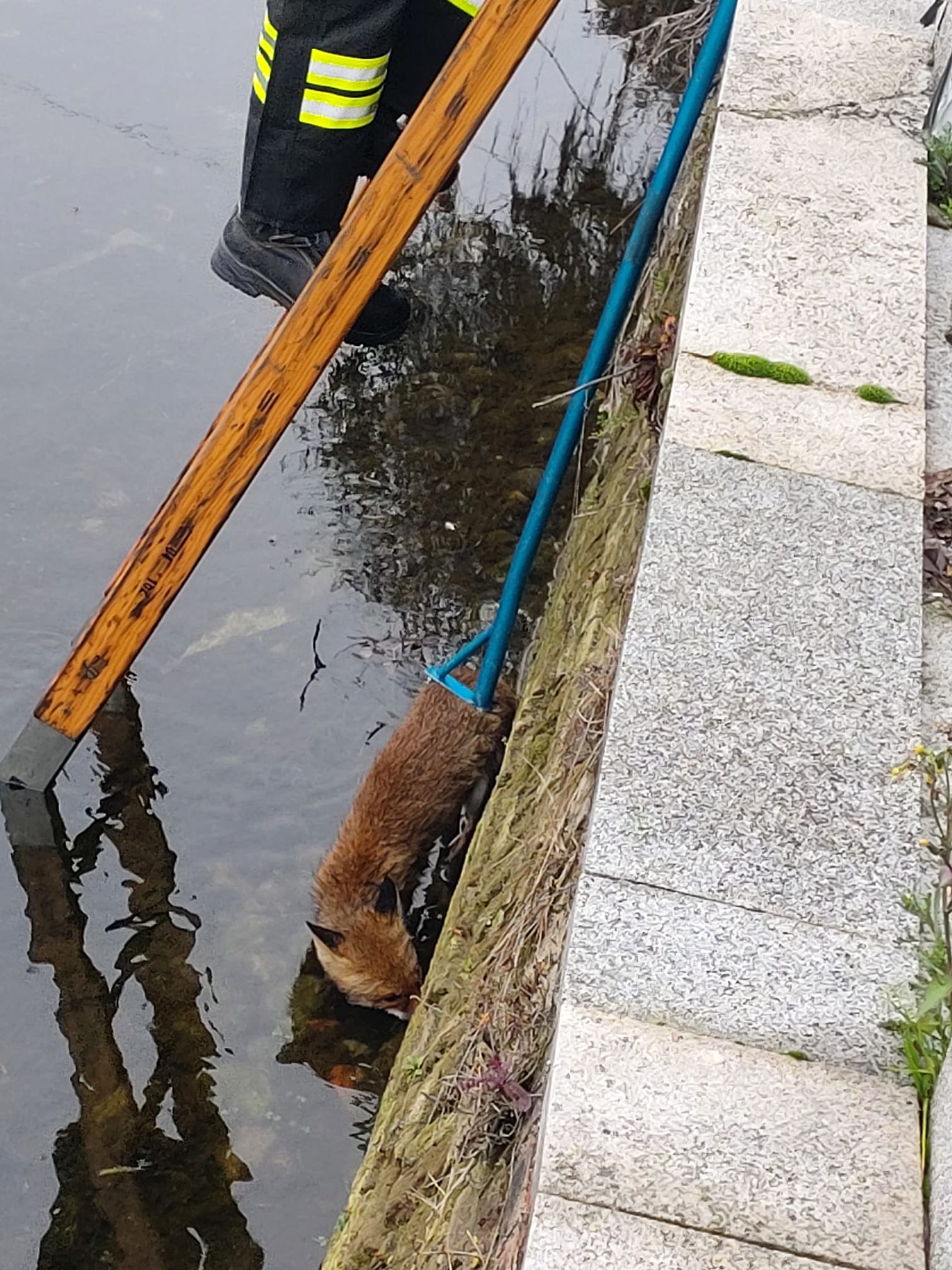 Sono stati necessarie due ore di intervento per soccorrere la volpe e riuscire a portarla in salvo.