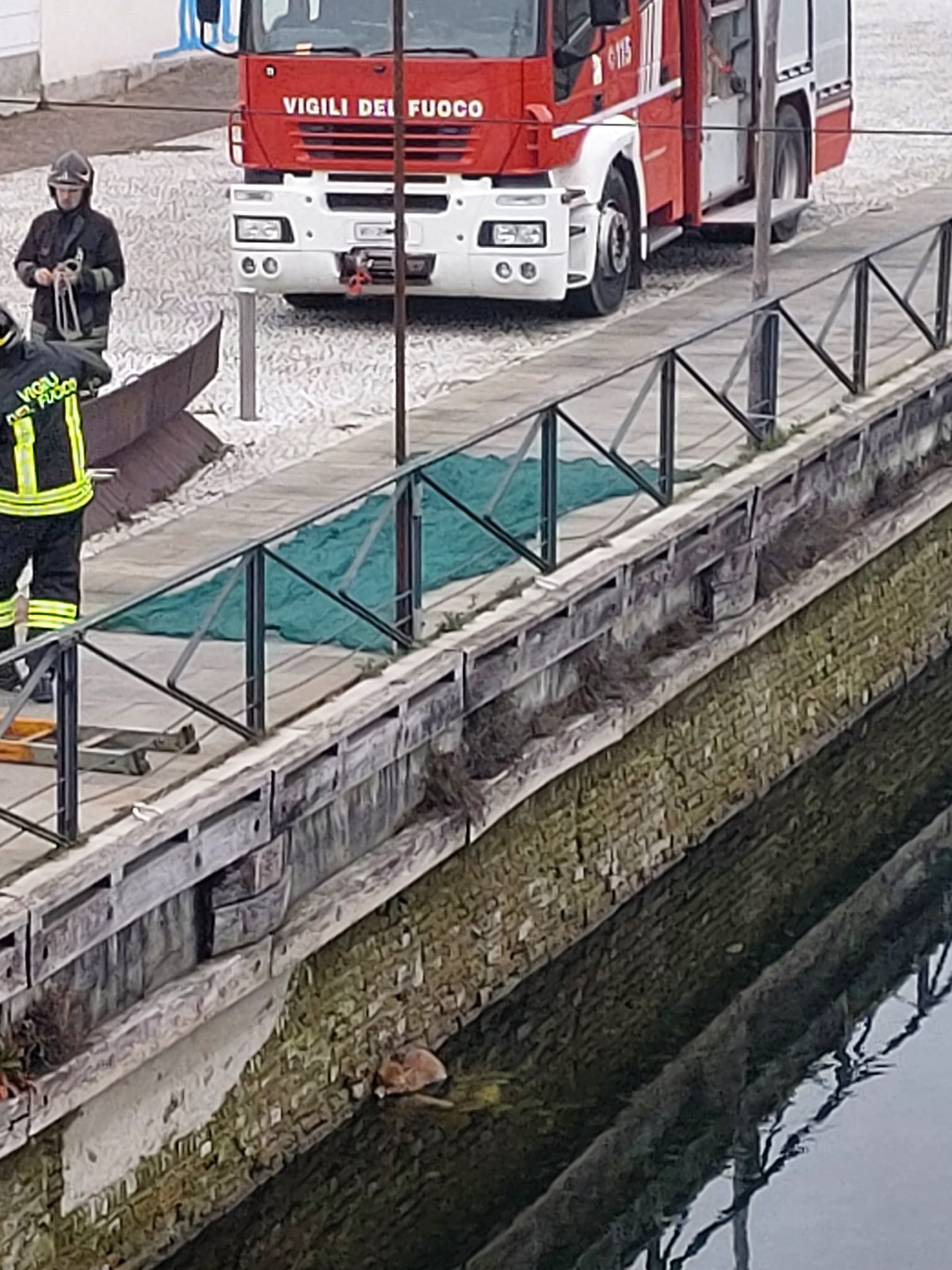 Soccorsi al lavoro questa mattina per recuperare dalle acque del Naviglio Grande una volpe