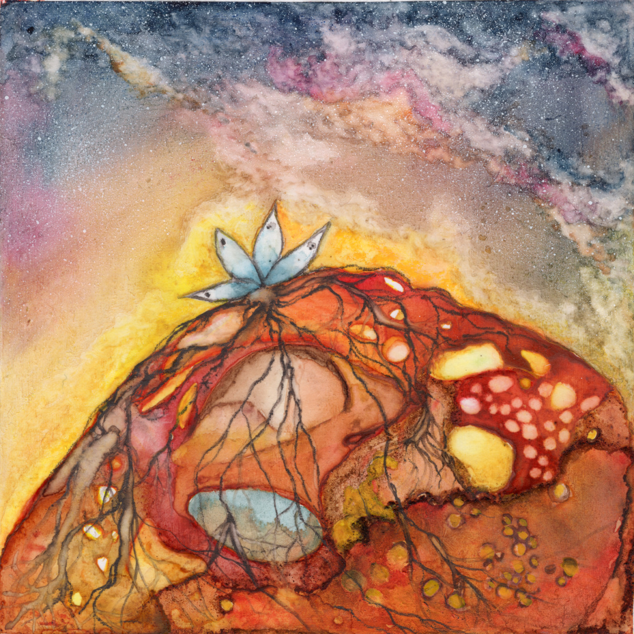 È una pittura che evoca il ciclo delle anime, spiriti che cercano di rientrare nel nostro sistema attraverso nuove forme. Un’esperienza immersiva che trasforma la materia pittorica in vita pulsante, ricordandoci che siamo fatti della stessa sostanza delle stelle e delle foglie. Un’esposizione che invita a ritrovare i codici perduti della nostra stessa esistenza.