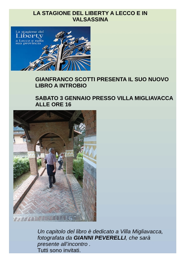 “Le ville Liberty a Lecco e in provincia”: Gianfranco Scotti presenta il suo ultimo libro a Introbio. L’appuntamento è per sabato 3 gennaio 2026 alle 16 nella sala comunale a Villa Migliavacca.