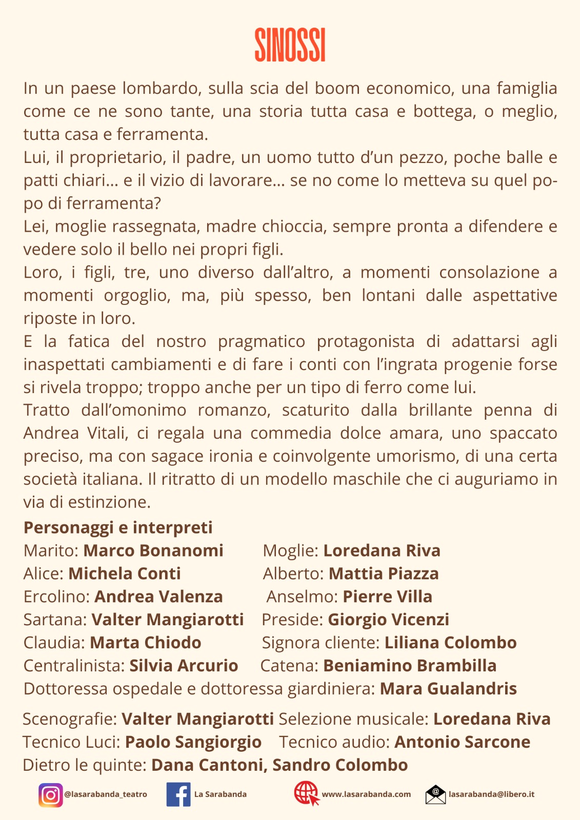 Debutta venerdì 30 e sabato 31 gennaio 2026, alle 21, al Teatro parrocchiale di Olgiate Molgora, il nuovo spettacolo della compagnia La Sarabanda: “Sono mancato all’affetto dei miei cari”, tratto dall’omonimo romanzo di Andrea Vitali, con l’adattamento per la scena di Loredana Riva e Mara Gualandris e la regia di Loredana Riva.