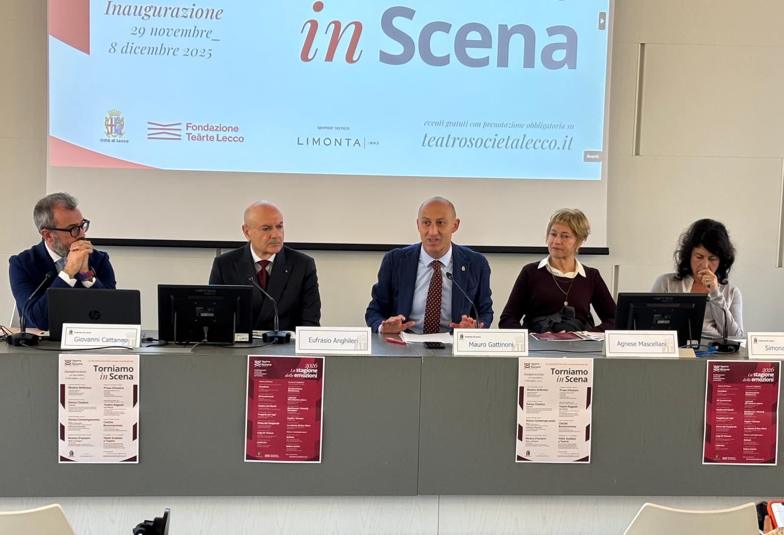 Il 29 novembre 2025 il Teatro della Società di Lecco riapre le sue porte al pubblico dopo otto anni di lavori di restauro. Per celebrare questo importante evento, dal 29 novembre all’8 dicembre si terrà una settimana inaugurale ricca di eventi, che inizierà con un workshop alla Piccola per coinvolgere i giovani nel processo creativo. Si aprirà così il palinsesto 2026, “La stagione delle emozioni”, che è stata presentata stamattina, giovedì 13 novembre 2025, nel corso di una conferenza stampa a Palazzo delle Paure, alla presenza dei rappresentanti di Fondazione Teàrte e dell’Amministrazione comunale. Sarà una proposta rivolta ad un pubblico diversificato, mantenendo però sempre alta l’asticella della qualità. Tutti gli eventi della settimana inaugurale sono ad ingresso gratuito su prenotazione, mentre biglietti e abbonamenti della stagione teatrale avranno prezzi  pensati per riattivare il pubblico, con sconti elevati per gli over 75 e soprattutto per i più giovani, gli under 25. Per quanto riguarda invece il bar del teatro, non sarà aperto per l’inaugurazione, ma ci sarà un bando apposito per l’affidamento della gestione. Dal 9 dicembre inizierà inoltre la posa del dehor esterno che sarà terminato per la fine dell’anno.