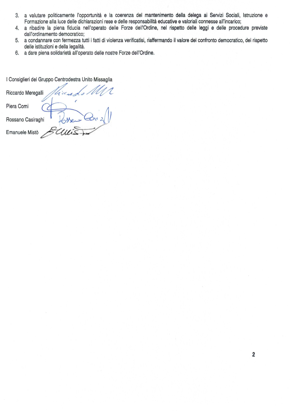 “Quanto accaduto a Torino è inaccettabile. Aggredire un poliziotto a terra significa colpire lo Stato e le istituzioni democratiche. Un assessore, soprattutto con deleghe educative e sociali, ha il dovere di condannare la violenza senza se e senza ma e di stare dalla parte della legalità” ha commentato il capogruppo di Centrodestra Unito, che siede sui banchi dell’opposizione a Missaglia.