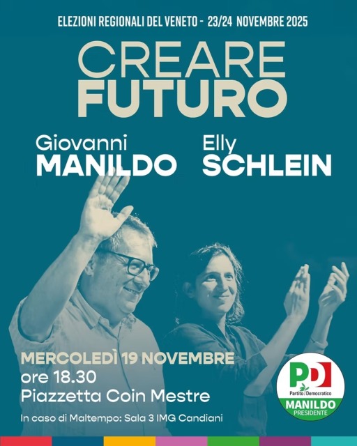 Questo appuntamento a Mestre segue il tour veneto di Schlein dello scorso sabato 15 novembre, durante il quale la segretaria nazionale ha sostenuto il candidato Manildo a Verona, per proseguire poi a Schio in Piazzale Stazione FS e concludersi a Belluno.