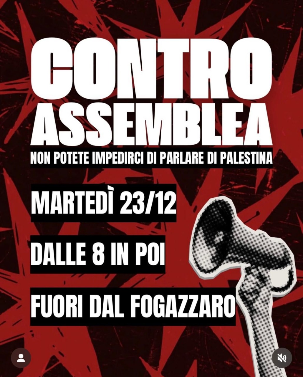 Il programma delle iniziative promosse dagli studenti del Fogazzaro è un’occasione straordinaria di formazione, un momento di accrescimento personale e collettivo attraverso cui arrivare ad una lettura critica e ragionata rispetto a uno dei drammi contemporanei più efferati a cui stiamo assistendo come genere umano, un nuovo genocidio, quello del popolo palestinese, per il quale la responsabilità politica del governo israeliano di Netanyahu è accertata dalla Corte Penale Internazionale e dall’ONU. Non serve, quindi, alcun contraddittorio per parlare di questa guerra e dello sterminio del popolo palestinese visto che non si tratta di opinioni, ma di fatti accertati dalla giurisprudenza internazionale”.