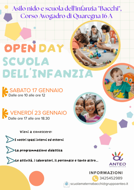In tale occasione si avrà modo di visitare spazi interni ed esterni, oltre a conoscere la programmazione didattica, le attività, i laboratori, il personale e tanto altro. Il secondo appuntamento del mese sarà invece venerdì 23 gennaio dalle 17 alle 18,30.