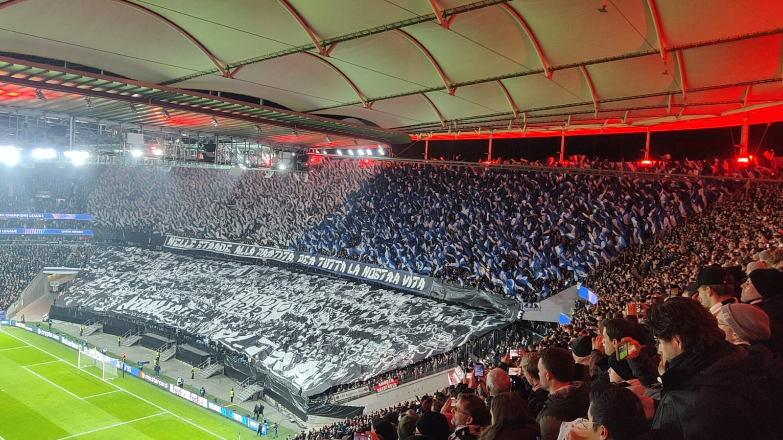 La mattina tedesca, sulle sponde del Meno e con lo skyline della città più americana di Germania a fare da sfondo, è fresca ma soleggiata. Tra lo stadio e il centro città ci sono appena quattro fermate di S8 o S9 (trenini regionali frequenti e molto comodi) e fin da subito sono parecchi i sostenitori della Dea che si vedono in giro. I primi bus dei tifosi (una trentina in totale) arrivano in zona stadio alle 7 e le 14 ore che separano dalla partita iniziano con un giro tra le casette di Natale vicino alla chiesa di San Paolo.