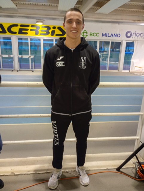 Colori virtussini anche in quel di Bergamo domenica, dove un altro brianzolo, Luca Aliprandi, ha esordito con in maglia Virtus Bologna. Luca, cresciuto con la maglia verde del Vedano, quest’anno è compagno di squadra di Martino e Michele, coi quali già condivide il campo di allenamento, la pista verde di Giussano; nei 60hs ha oggi ottenuto un solido quinto posto con il tempo di 8.60.