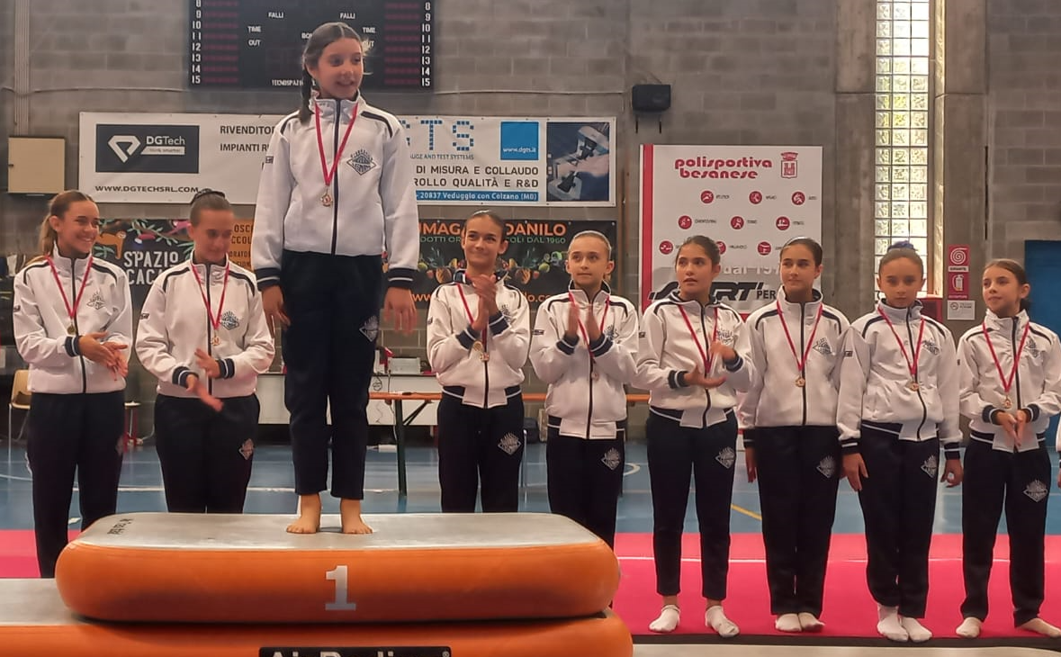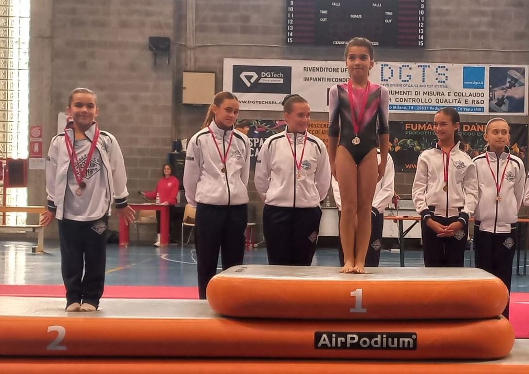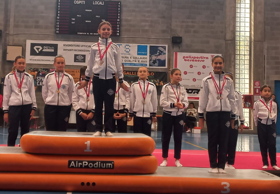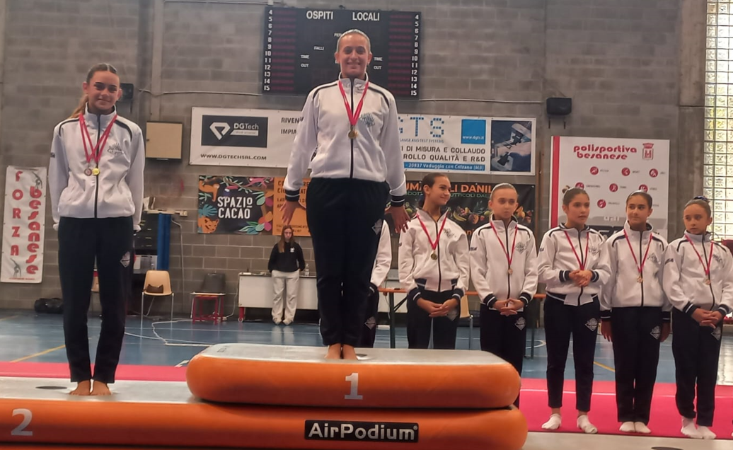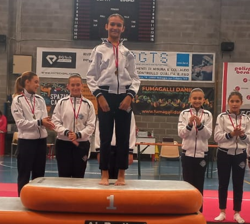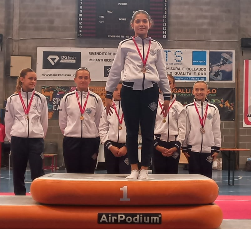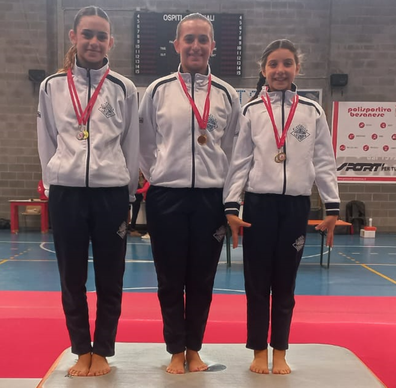 La Ginnasta allieva A2 Giorgia Albricci è prima mentre la compagna Alice Cucchetti si piazza al terzo posto. L’allieva A3 Elena Ferrentino sale sul podio al primo posto.