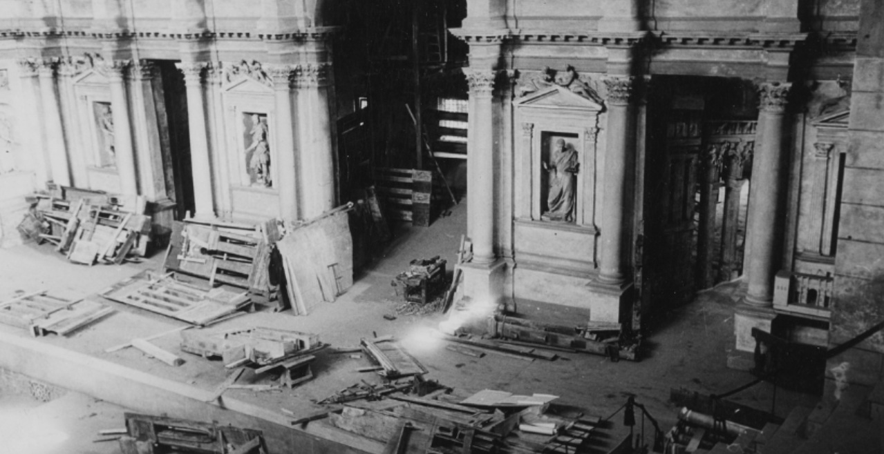 Il percorso racconta i gravi rischi corsi dal Teatro Olimpico dopo i bombardamenti del 1944, in particolare per le fragili scenografie lignee realizzate da Vincenzo Scamozzi nel 1585 per l’Edipo Re, tra gli elementi più vulnerabili dell’edificio palladiano. La mostra ricostruisce la complessa operazione di salvataggio che ne permise la conservazione.