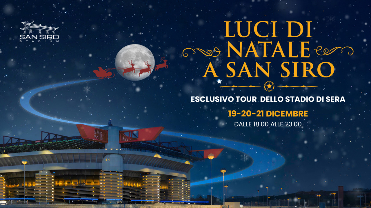 Durante le festività natalizie lo Stadio di San Siro si accende di una magia speciale con un esclusivo tour serale pensato per vivere il tempio del calcio sotto una luce diversa. Tra illuminazioni suggestive, musica, profumo di castagne e vin brulé, i visitatori potranno esplorare gli spazi più iconici dello stadio in un’atmosfera festosa e coinvolgente nelle serate di Venerdì 19 dicembreSabato 20 dicembre –  Domenica 21 dicembre con apertura straordinaria dalle 18 alle 23 (ultimo ingresso alle 22.30).