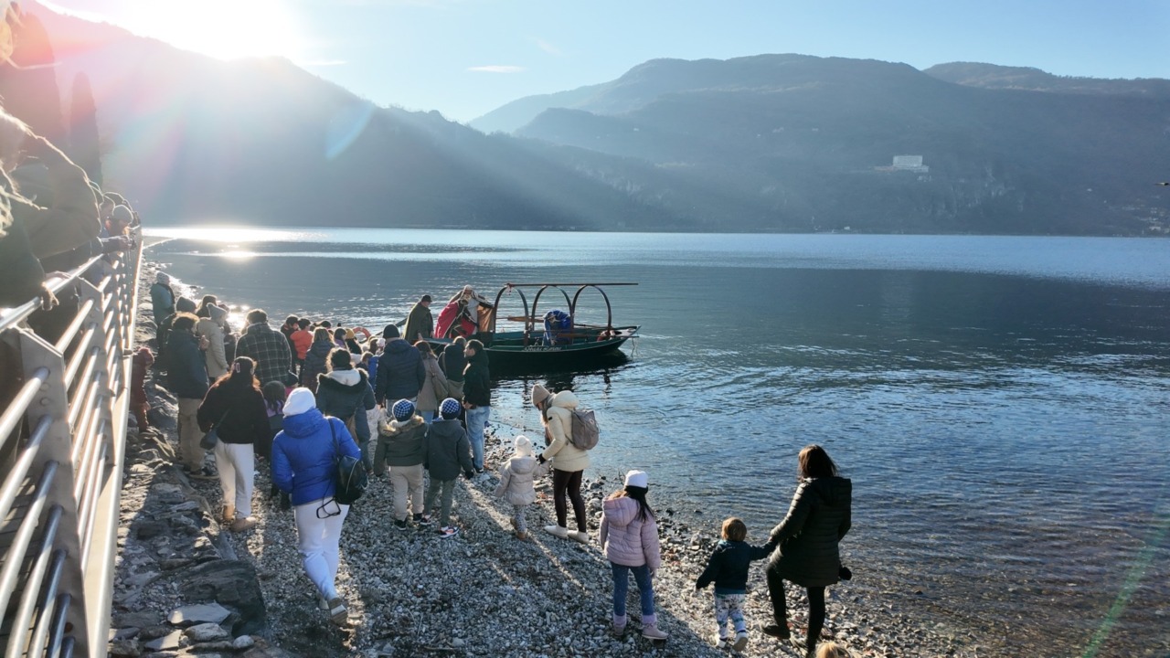 I Magi, interpretati daPiergiuseppe Bassanese, Gianni Longhi e Bruno Carenini , nonostante la temperatura pungente sono giunti sull’imbarcazione tipica del Lario (timonata dall’infaticabile Irish Mozzanica) sulla spiaggetta di fronte alla parrocchiale sul lungolago, dove sono stati accolti dal caloroso abbraccio di tanti bimbi accompagnati da genitori e nonni.