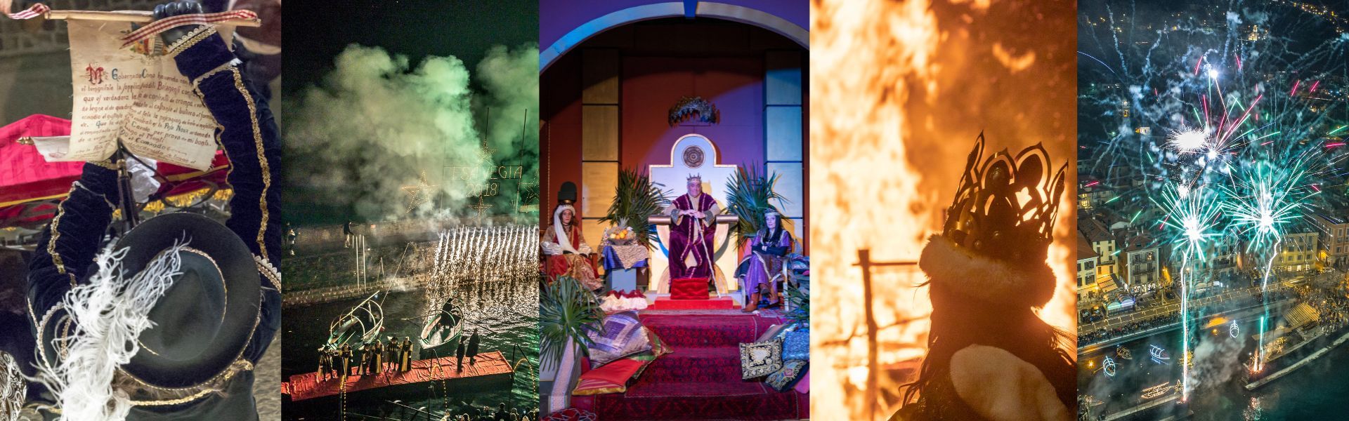 La sera, la Pesa Vegia raggiunge il suo culmine: alle 21:00 il traino delle Pese attraversa le vie del paese, alle 22:00 arriva la Gondola dei Messi Spagnoli con un emozionante spettacolo pirotecnico al Molo, seguito dalla lettura della Benevola Ordinanza dal balcone del Municipio. Il corteo dei Re Magi parte alle 22:45, e a mezzanotte si accende il tradizionale Falò al Molo, che chiude una giornata intensa e ricca di emozioni.