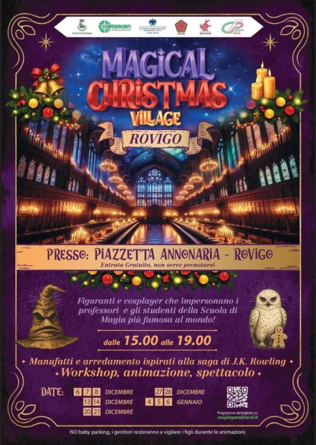All’interno del Magical Christmas Village Rovigo i visitatori troveranno figuranti e cosplayer che impersonano professori e studenti della scuola di magia più famosa al mondo, pronti a immergere il pubblico in un’esperienza suggestiva e coinvolgente. Il percorso includerà manufatti e scenografie ispirati alla saga di J.K. Rowling, workshop tematici, momenti di animazione e veri e propri spettacoli dedicati alla magia del Natale.
