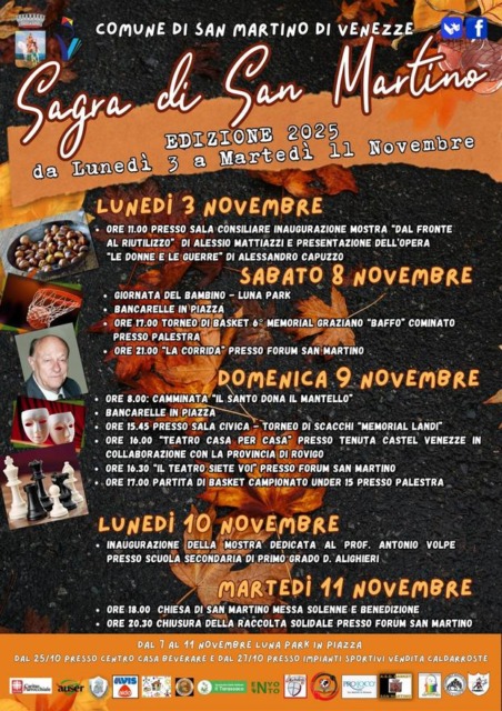 Dal 3 al 11 Novembre torna la tradizionale “SAGRA DI SAN MARTINO”, promossa dal Comune di San Martino di Venezze, in collaborazione con la Biblioteca Comunale e le Associazioni Locali