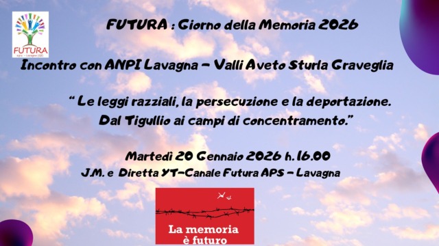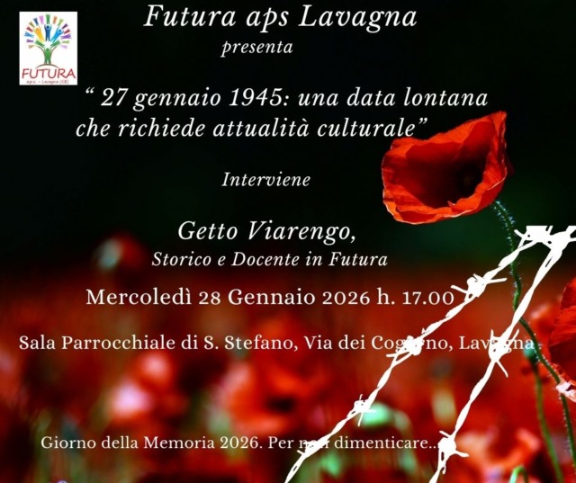All’intento del percorso culturale dell’Associazione FUTURA aps- Lavagna, vengono presentati due momenti dedicati al Giorno della Memoria 2026.