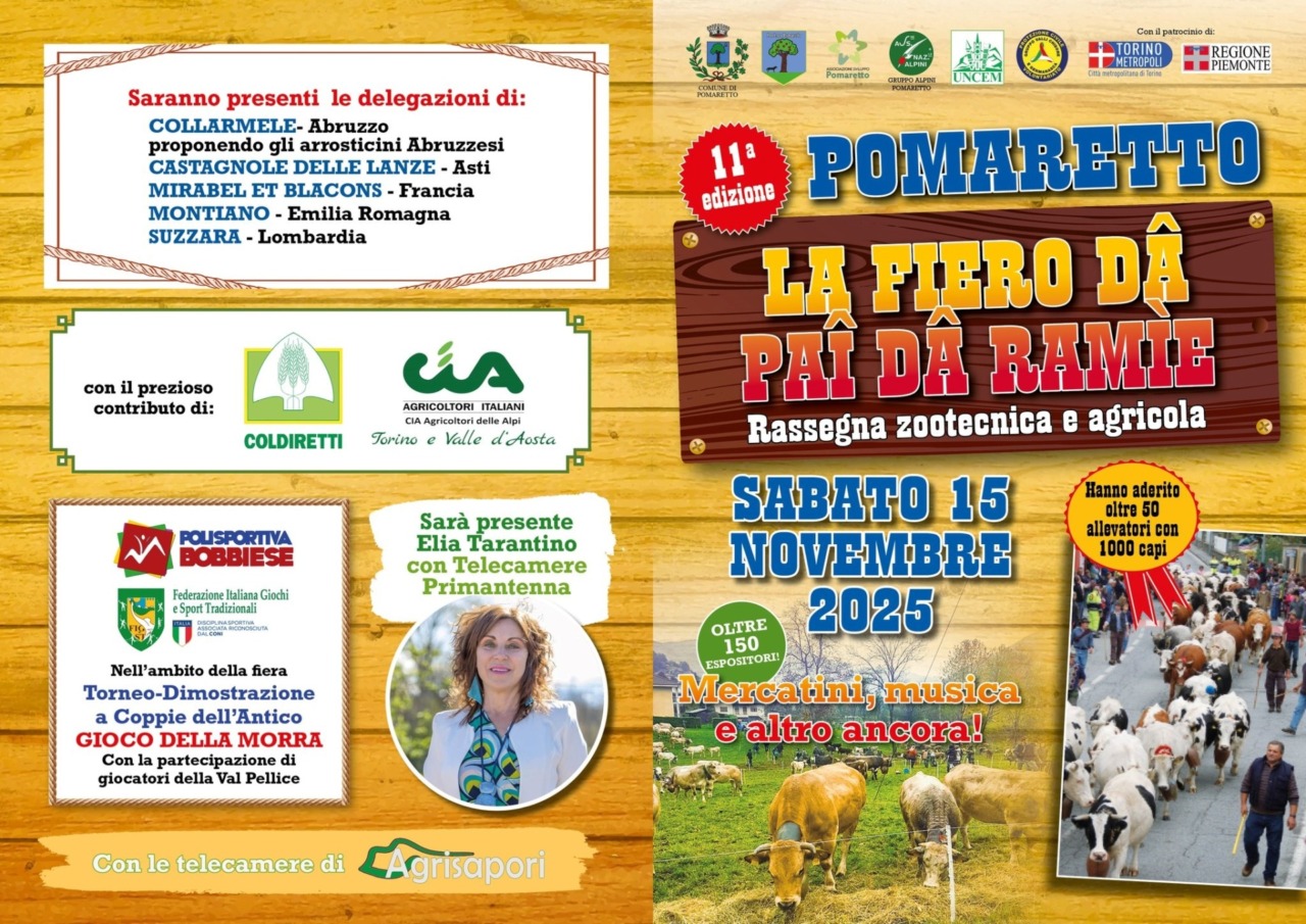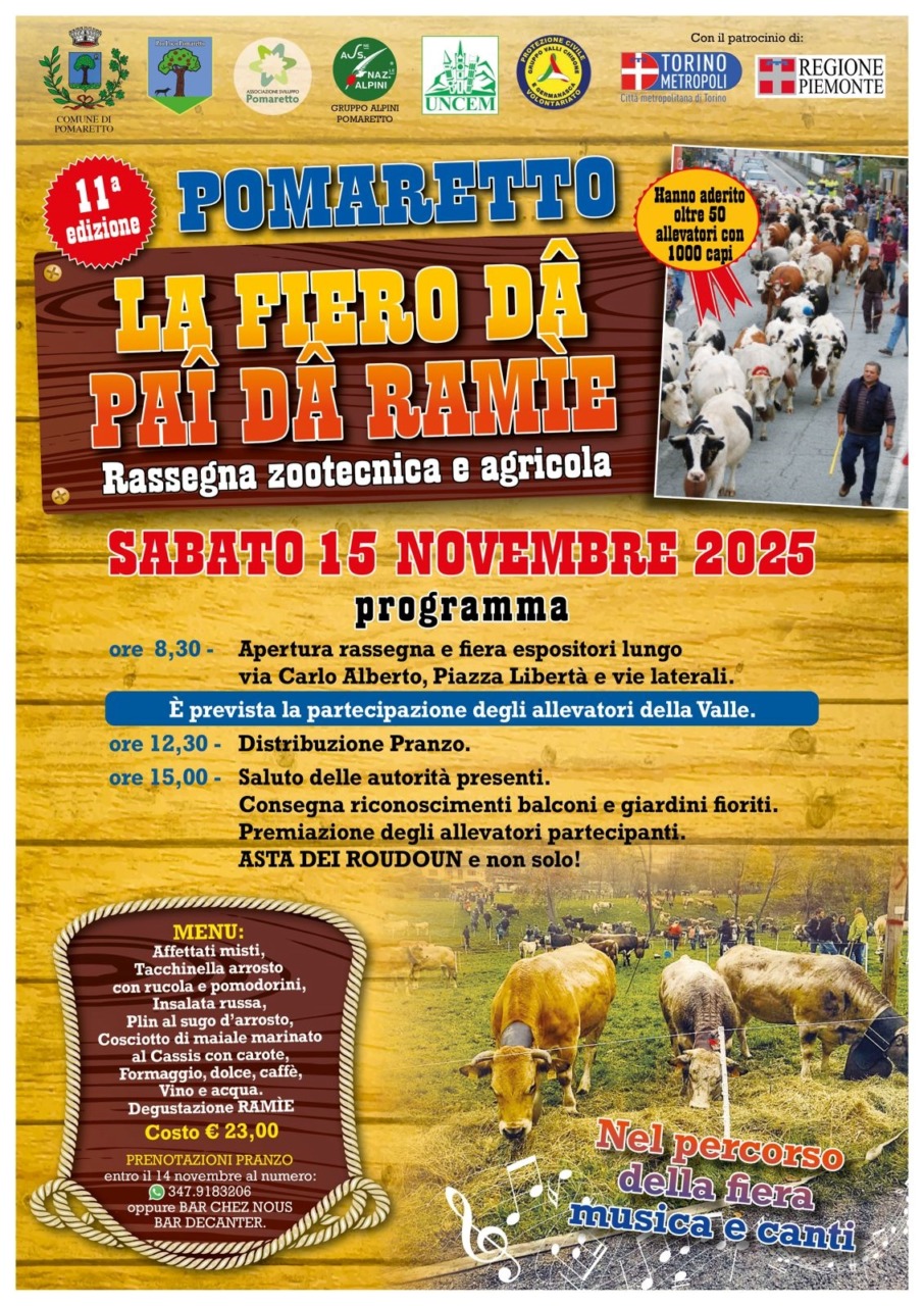 Sabato 15 novembre a Pomaretto torna la Fiero dâ Paî dâ Ramìe, ovvero la Fiera del paese famoso per il vino Ramìe, prodotto dell’enologia eroica che si pratica tra Val Chisone e Val Germanasca.