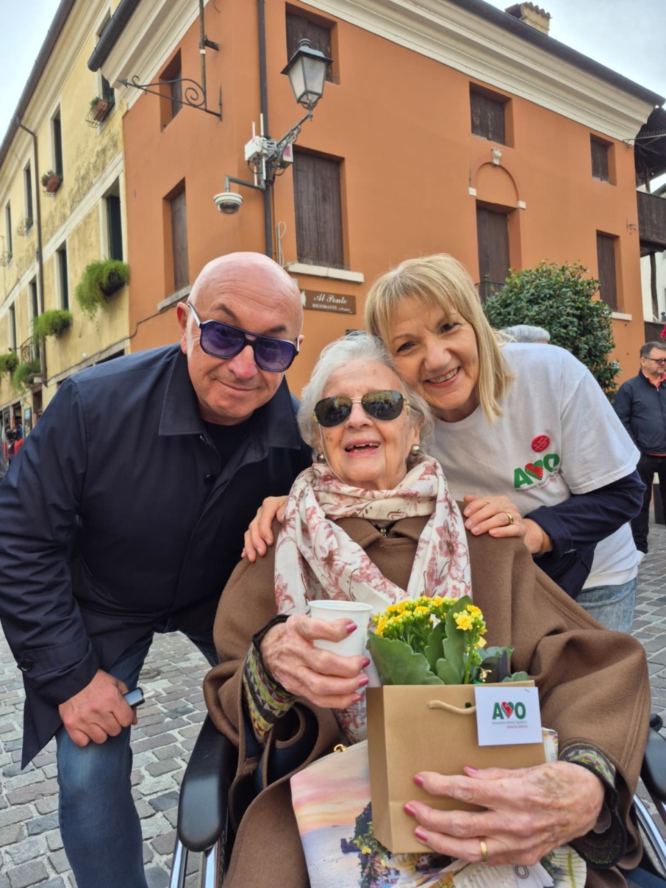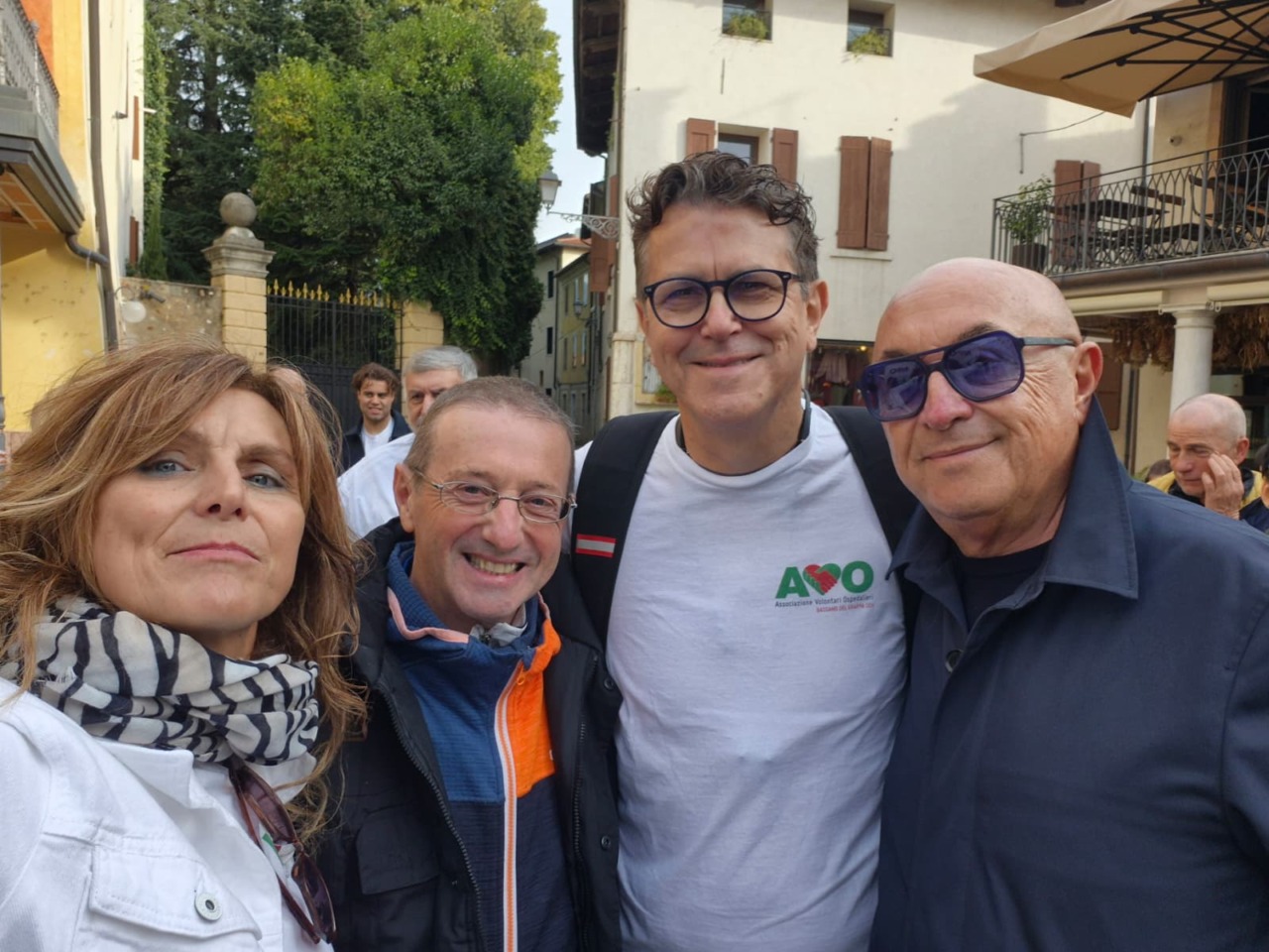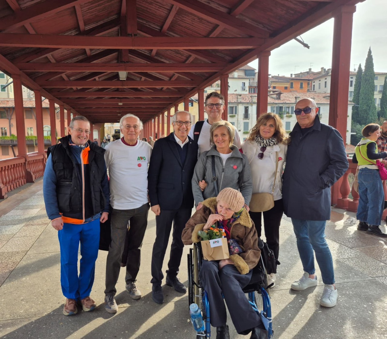 In via Volpato, spalle al Ponte degli Alpini, è stata fatta una sosta per consentire di scattare qualche foto ricordo della bella giornata e poi l’allegra brigata è sbucata in piazzetta Angarano dove la stessa Associazione Volontari Ospedalieri è stata raggiunta dal vice sindaco Mariano Scotton che, arrivato dalla vicina Piazza Libertà dove fervevano i preparativi per l’arrivo della corsa ciclistica Veneto Classic 2025, ha portato i saluti dell’Amministrazione Comunale e ringraziato gli organizzatori, raggiunto nel frattempo anche da Gregorio Visentin della A.S.D. Greg Runners, grazie al quale l’estate scorsa si è dato corpo alla prima delle passeggiate in Città per gli ospiti del pensionato.